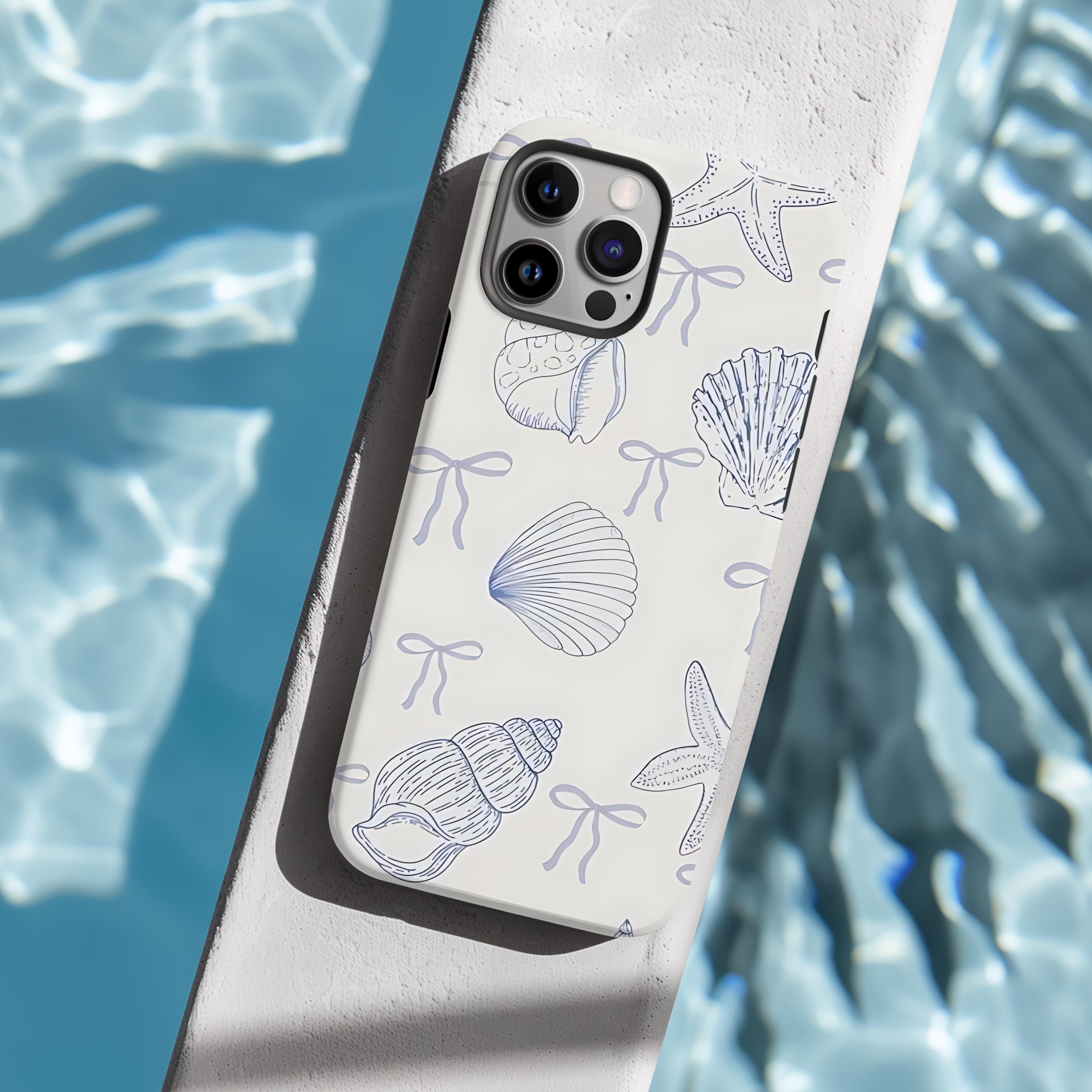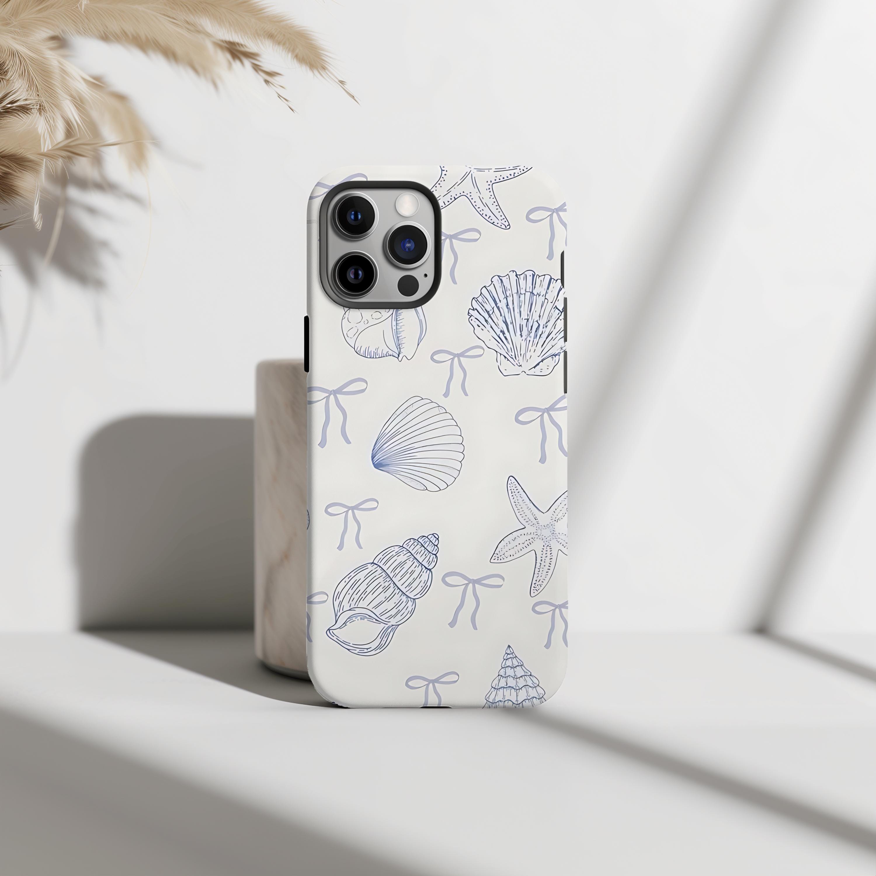 Light Blue Seashell Pattern Phone Case: Beachy Coquette Style