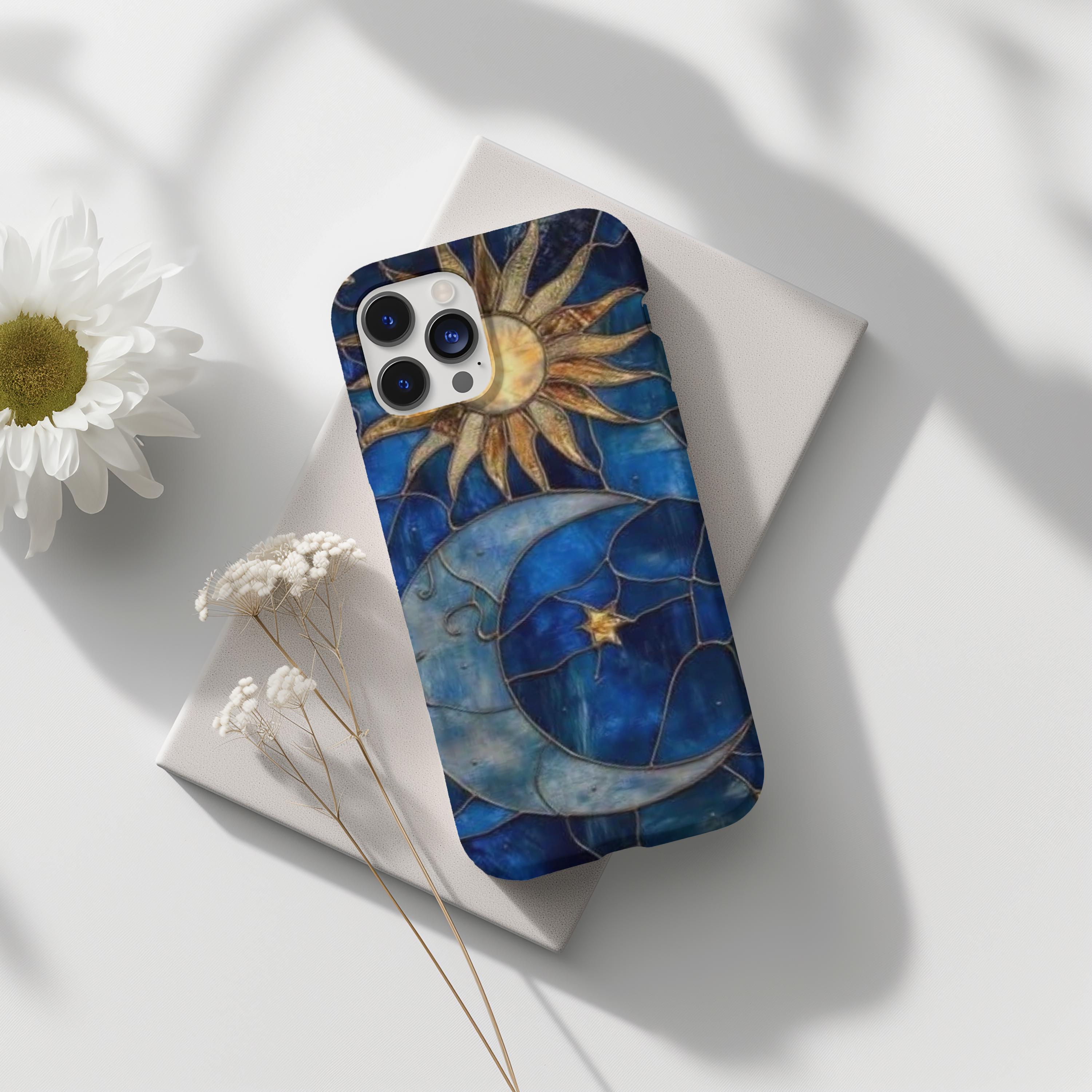 Crafted with an ultra-clear, high-quality durable TPU or hybrid polycarbonate shell (depending on your phone model), this case features a meticulously detailed celestial design that mimics the look of stained glass illuminated by sunlight. Constellations, crescent moons, radiant suns, and planetary orbits are delicately interwoven in a mesmerizing kaleidoscope of color and light. Hues of deep indigo, sapphire blue, cosmic violet, and glimmering gold come together in fluid, flowing lines, giving the case a luminous, almost ethereal quality that shimmers as you move your phone.