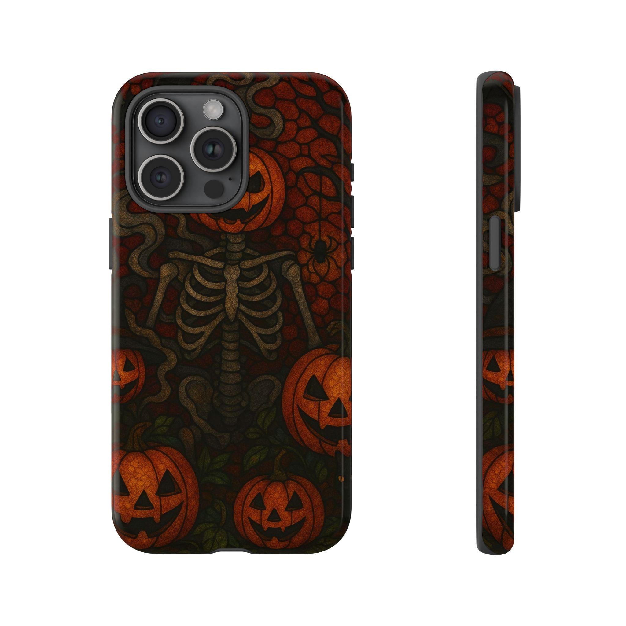 Whether you're attending a haunted house party, trick-or-treating, or just love spooky aesthetics, the Pumpkin Head Skeleton Phone Case will keep your phone protected and your Halloween vibes strong. It’s more than just a case—it’s a ghoulishly good statement piece.