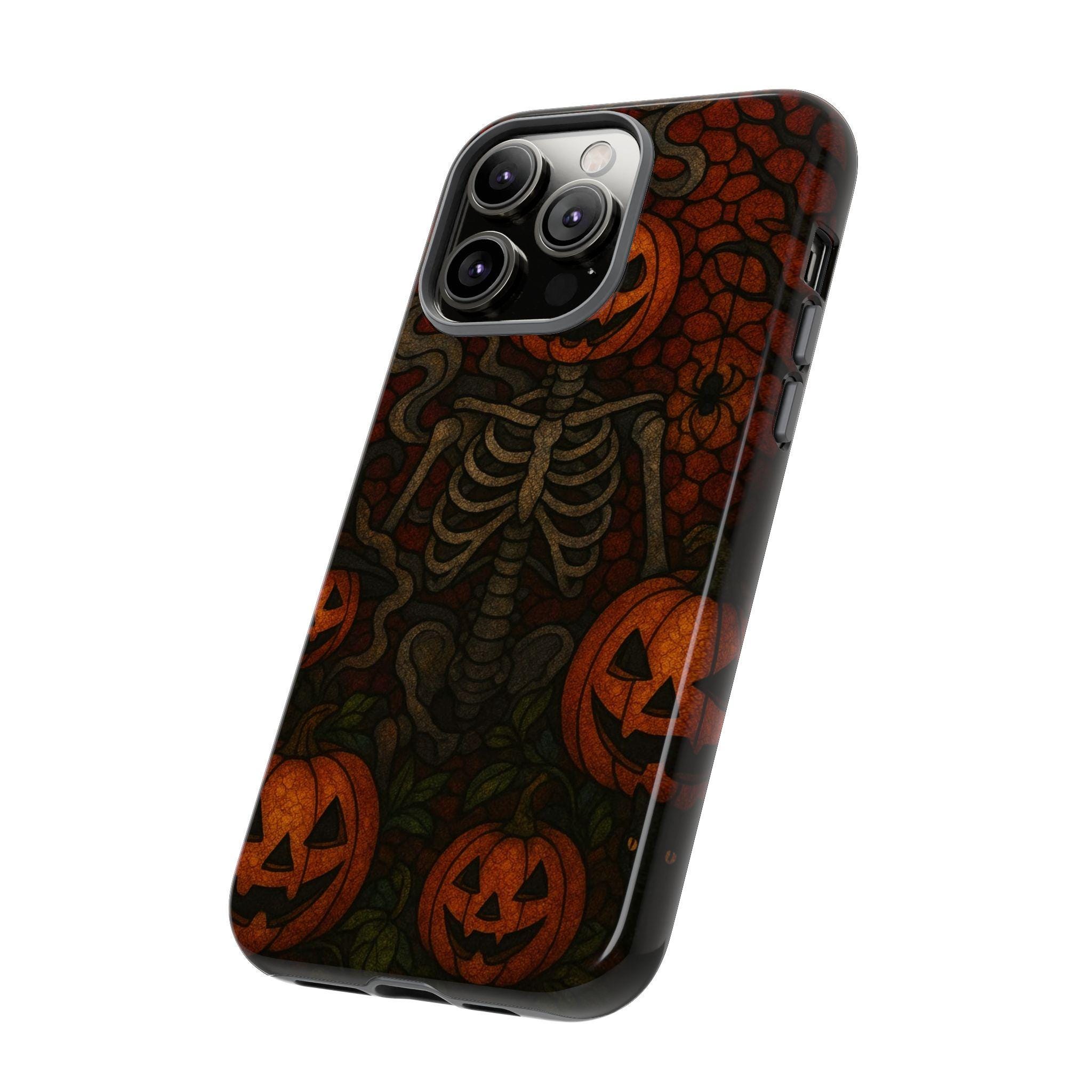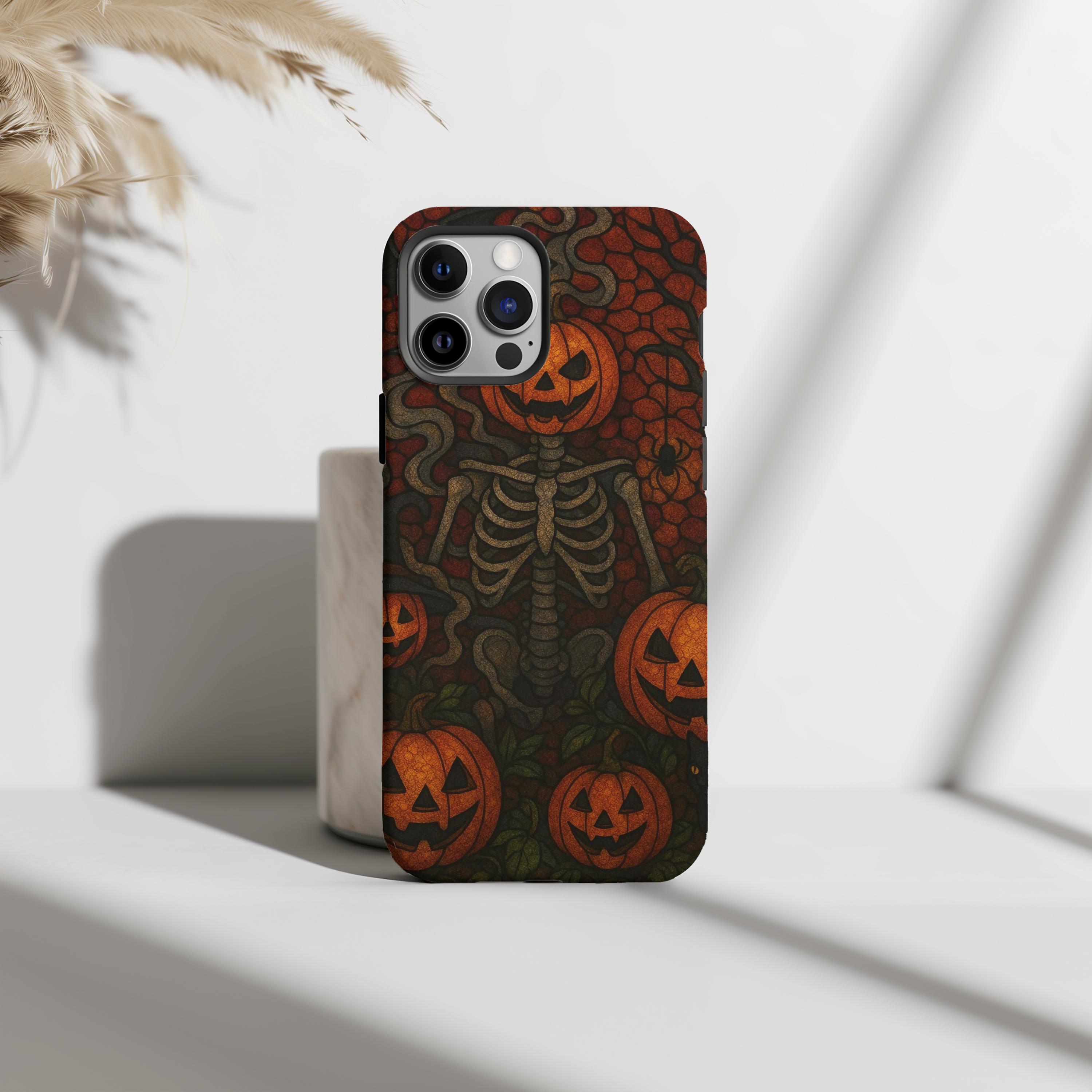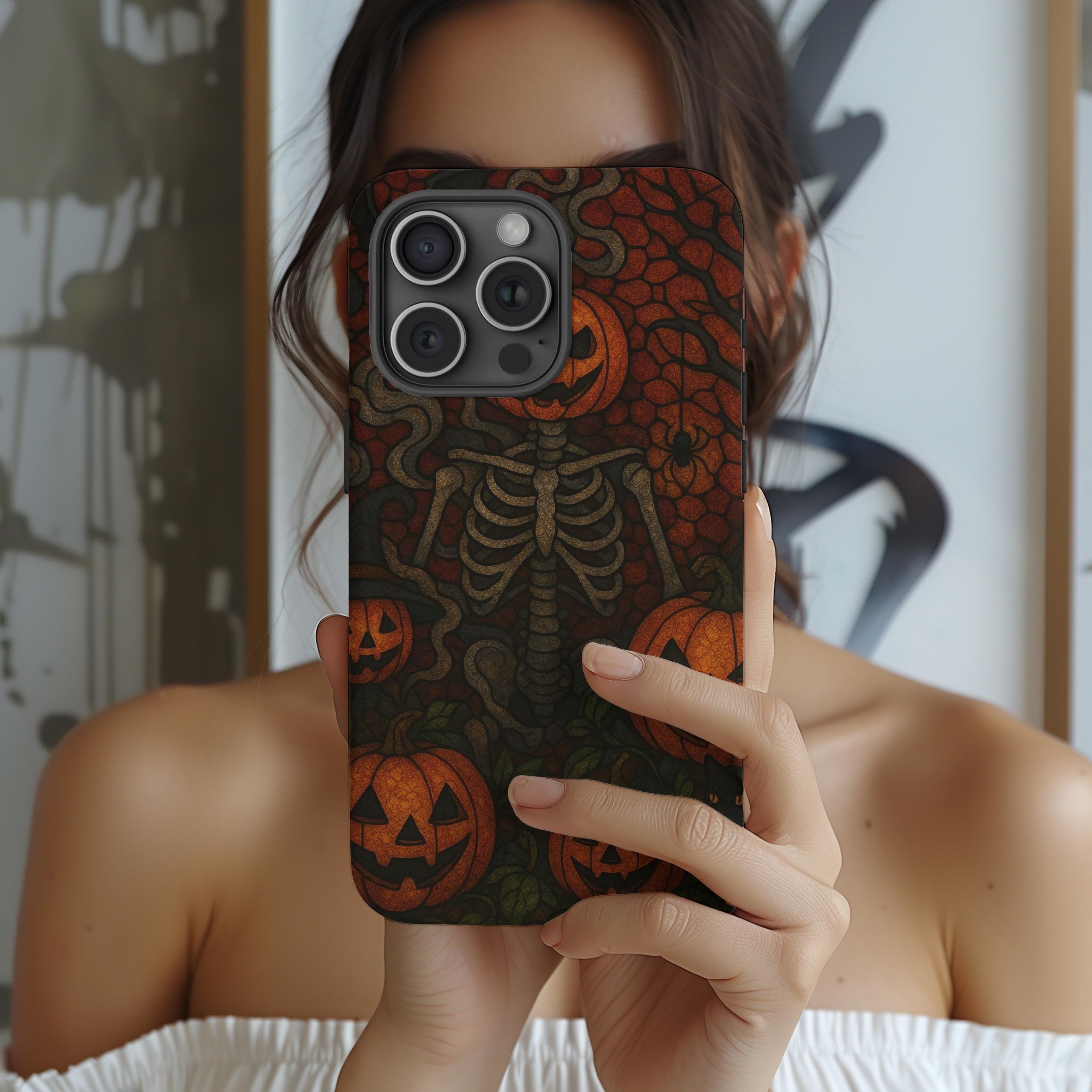 Halloween Pumpkin Skeleton Phone Case: Spooky Jack-o'-Lantern Design