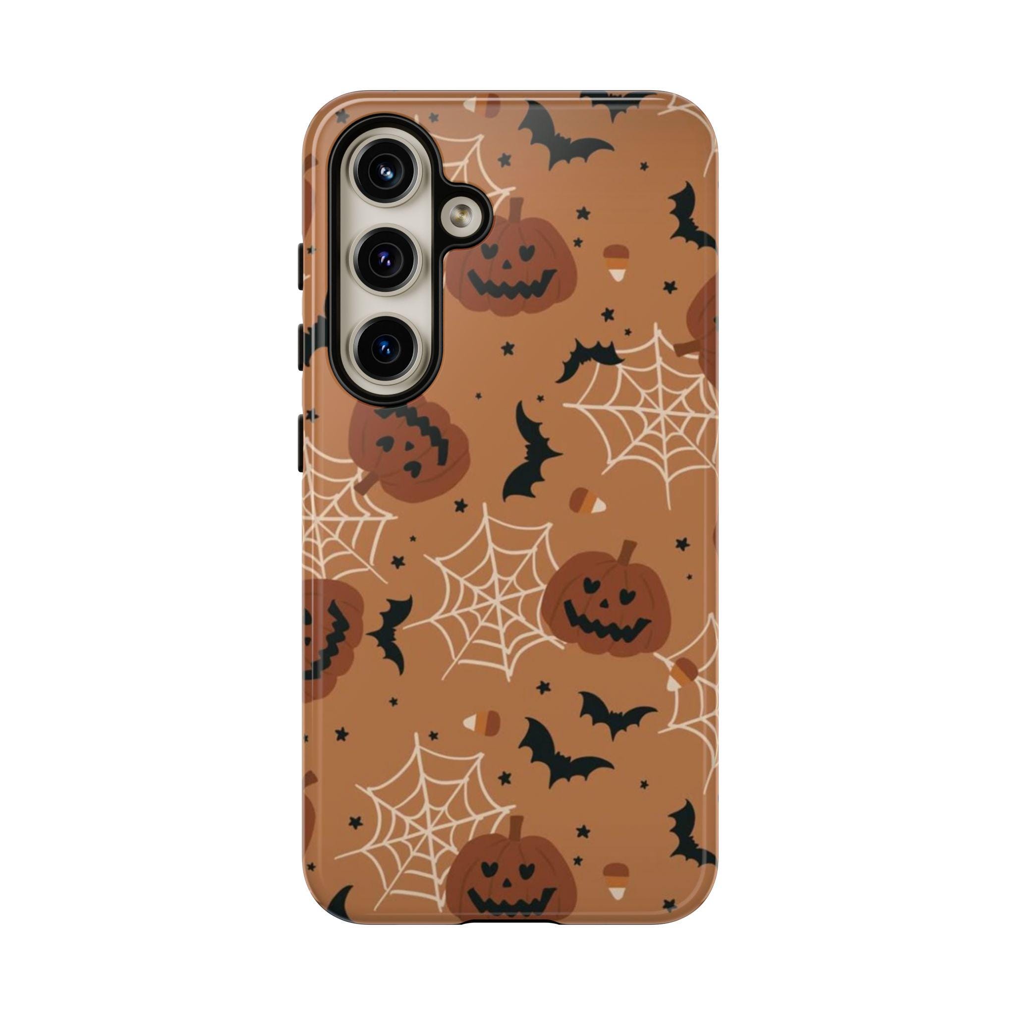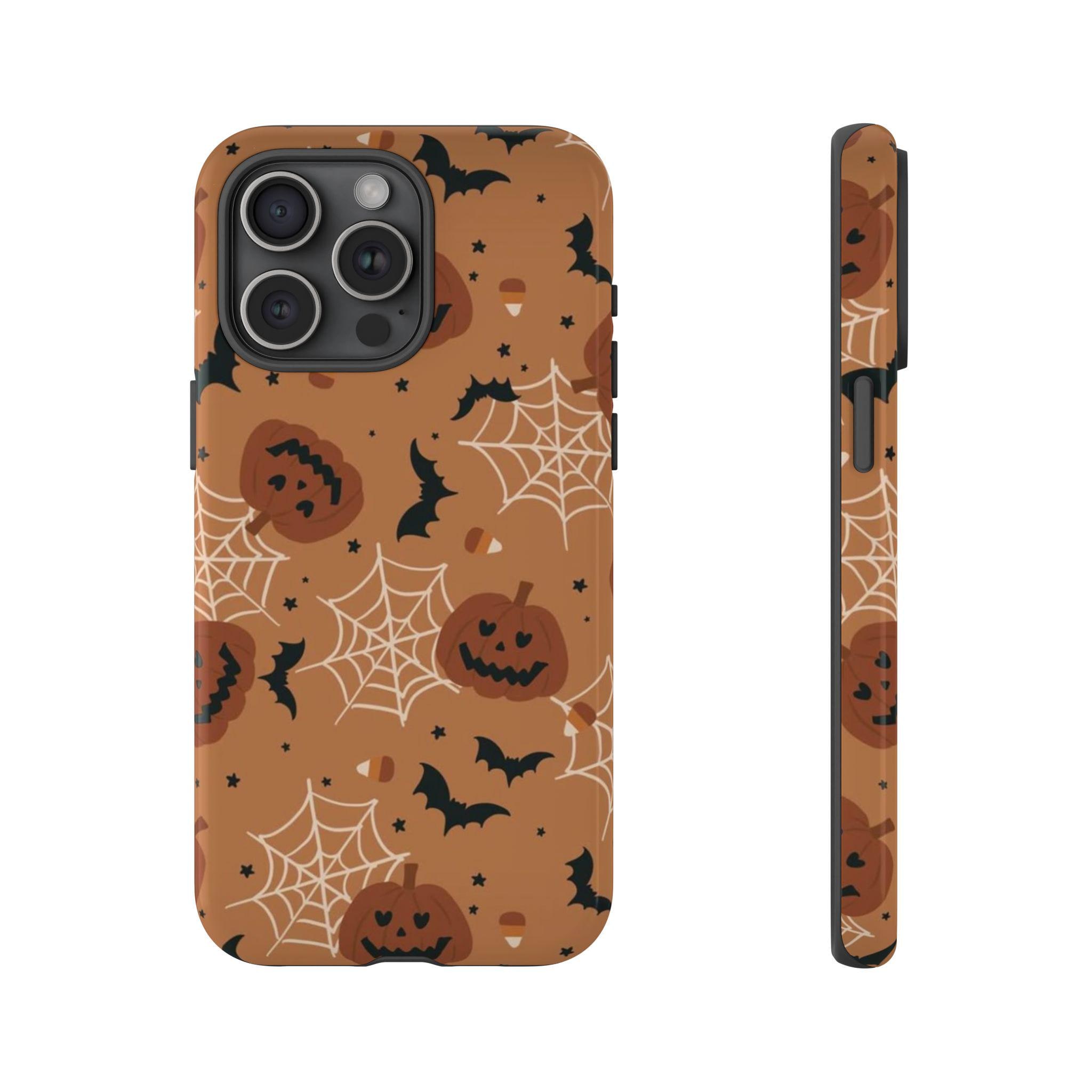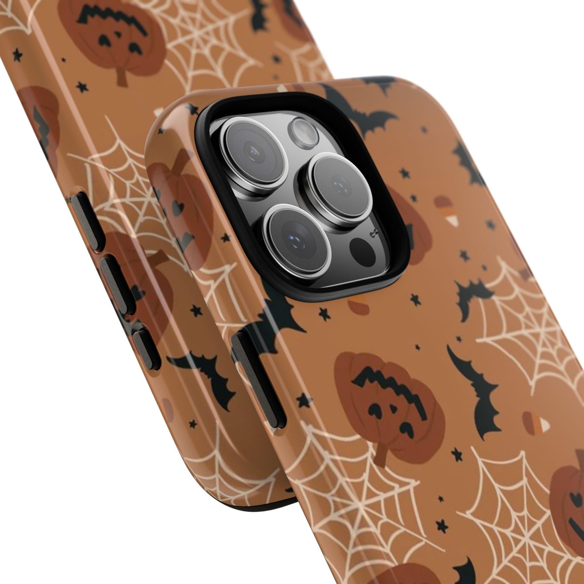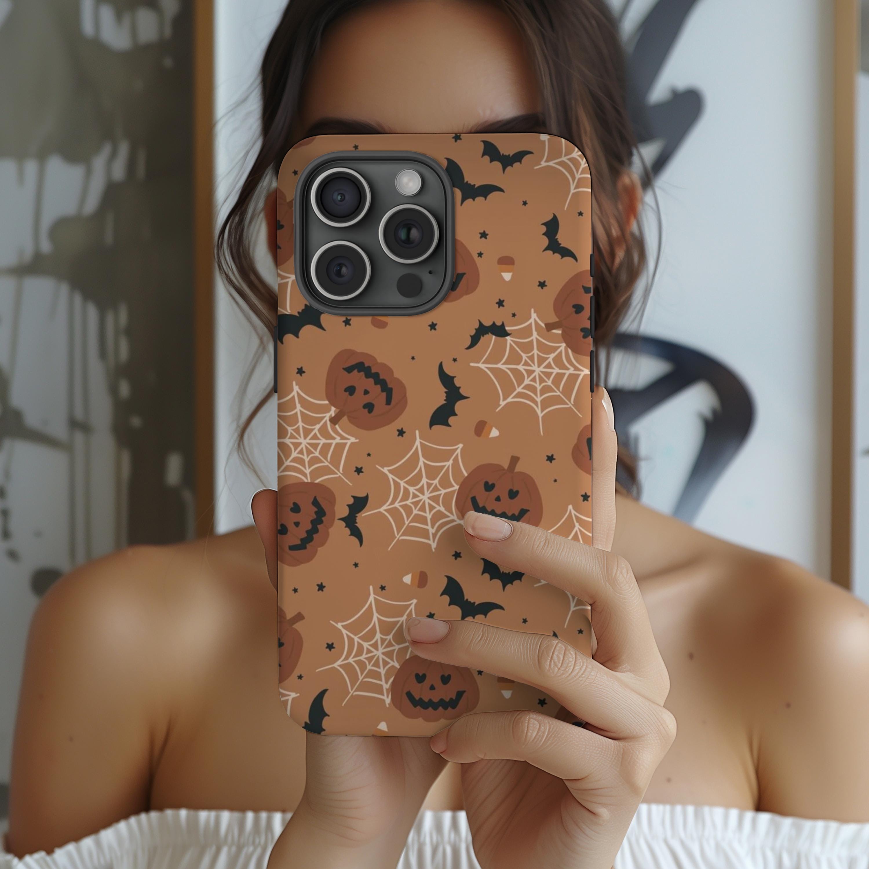 🎃 Halloween Pumpkin & Bats With Spider Webs Creepy Phone Case – Spooktacular Style Meets Everyday Protection 🕸️🦇