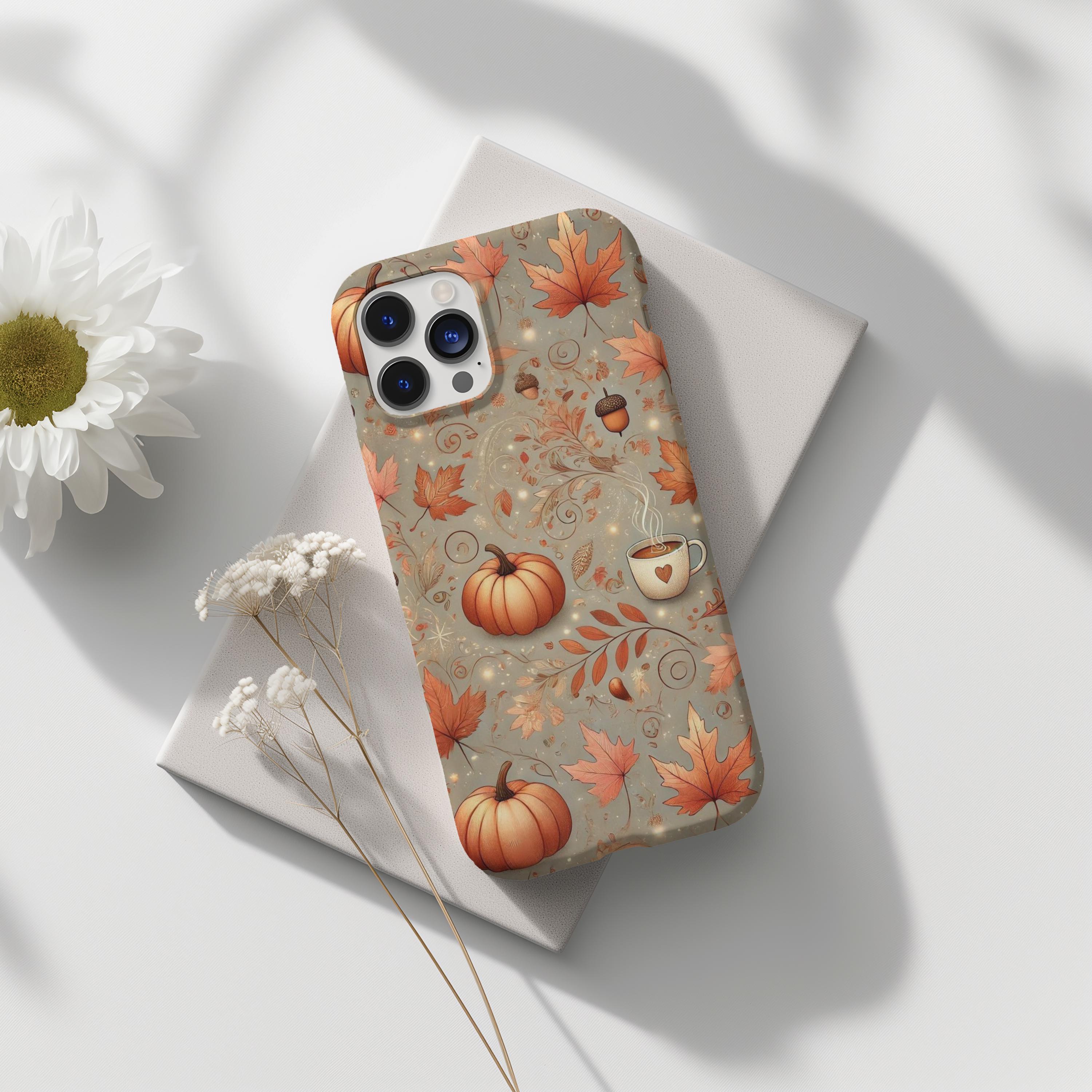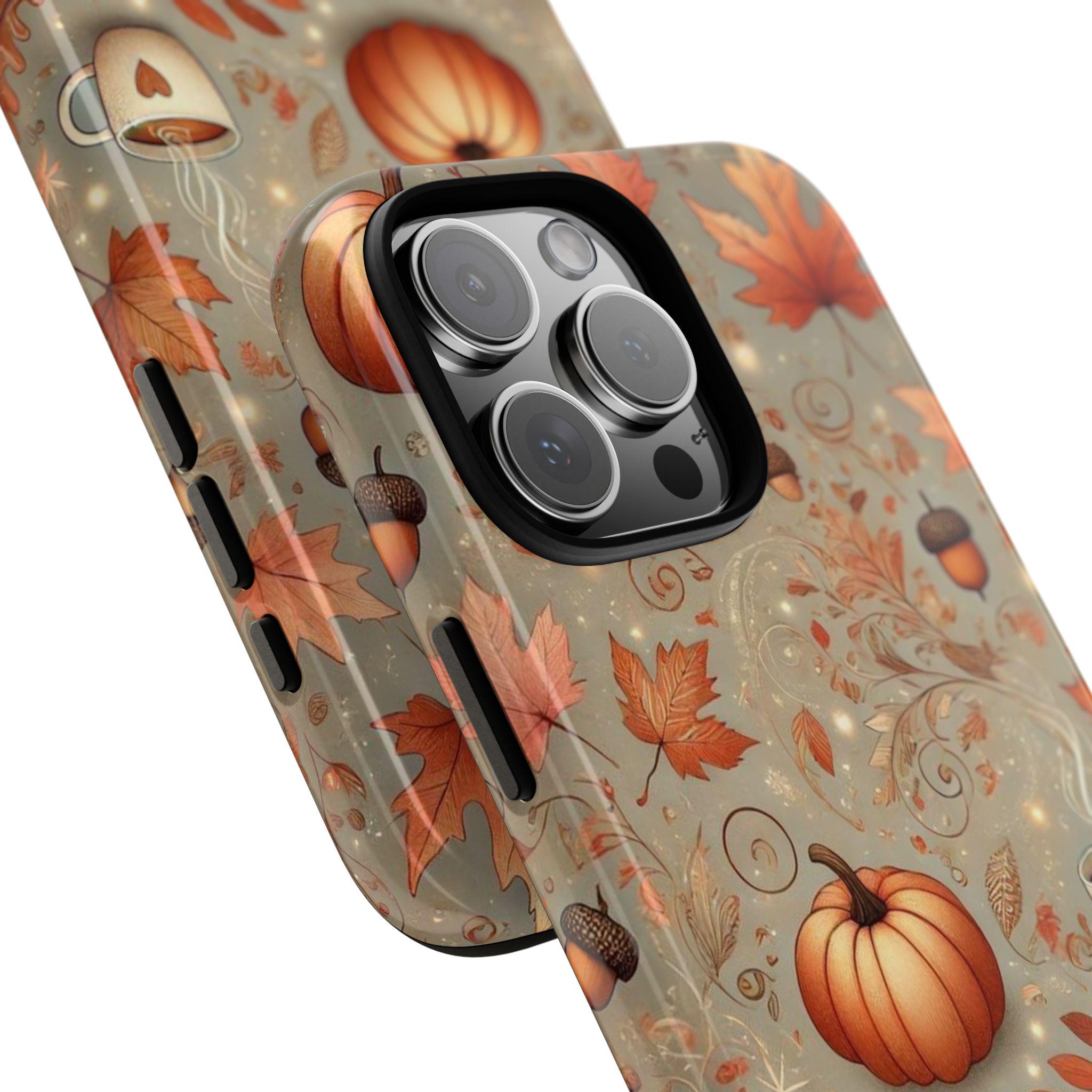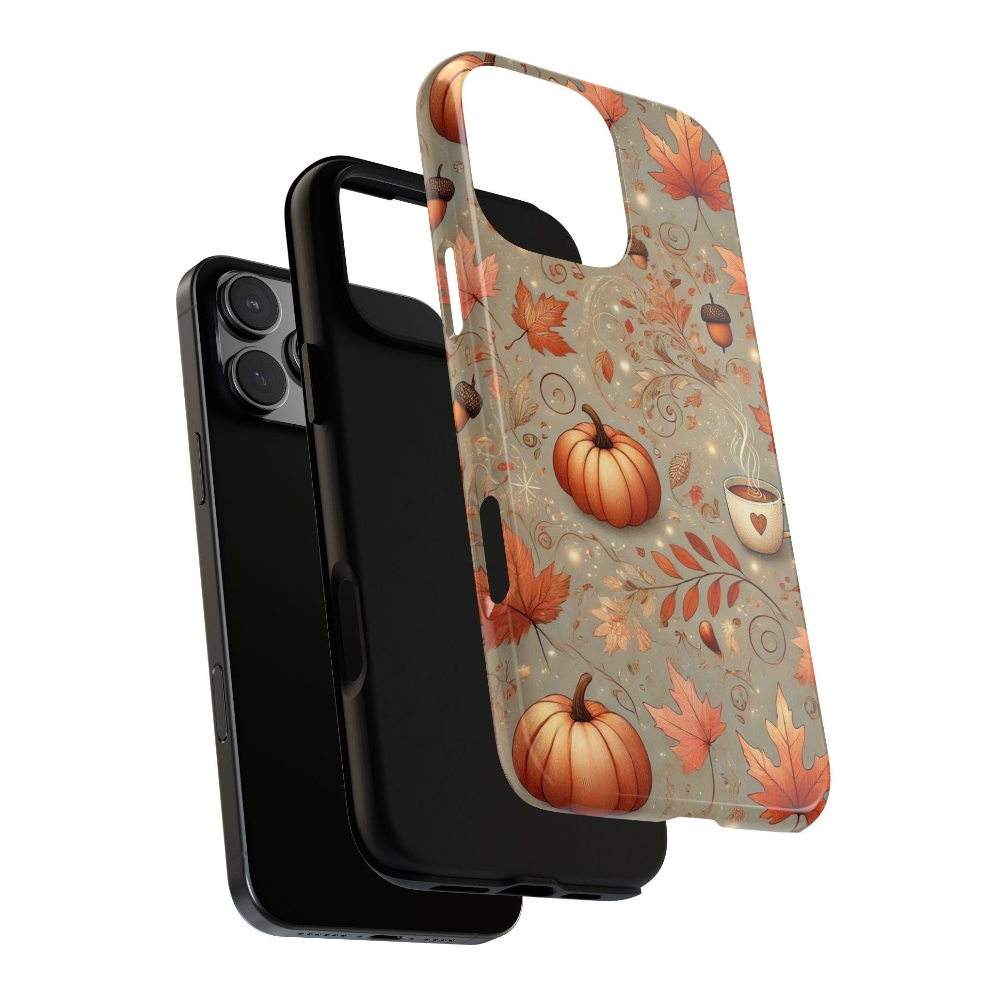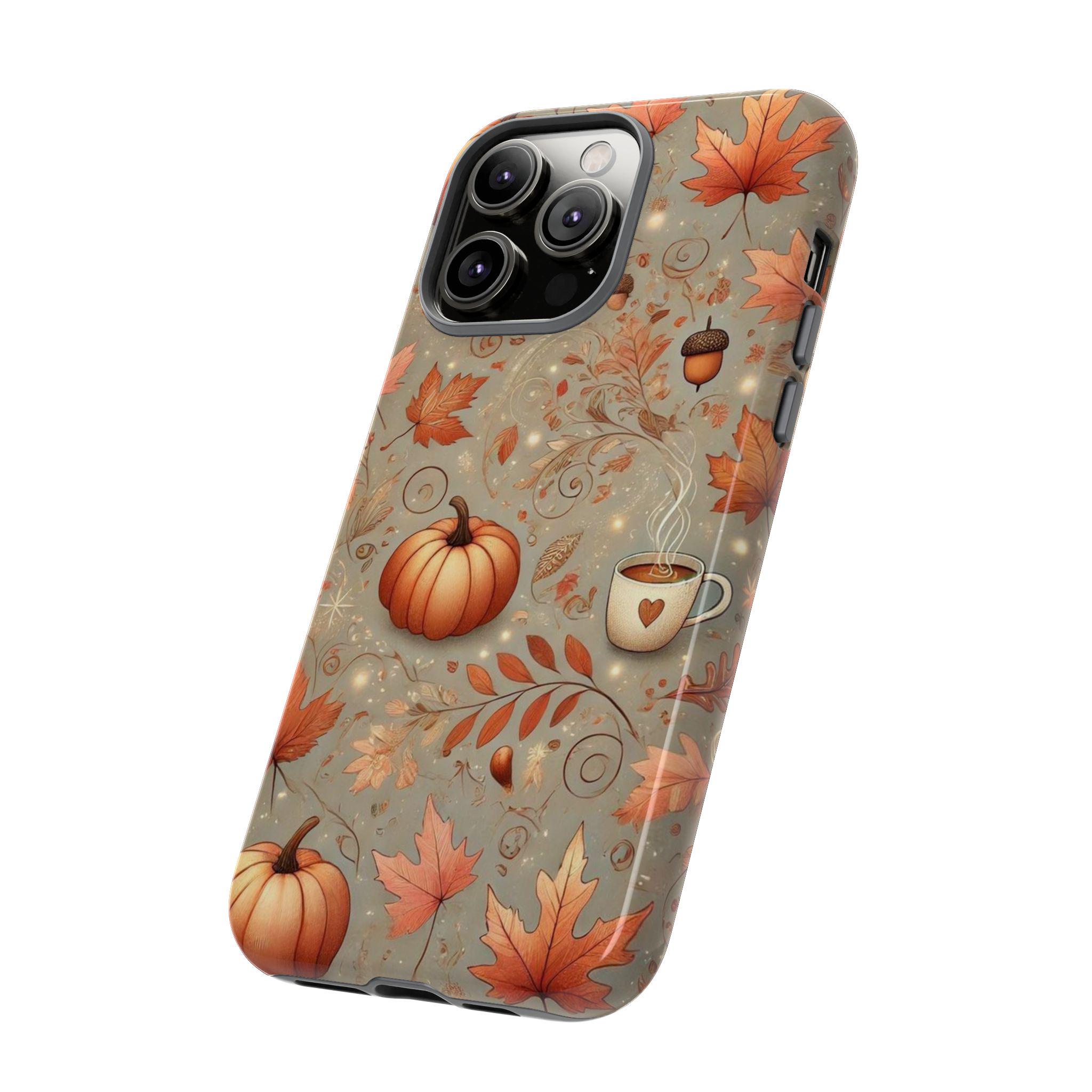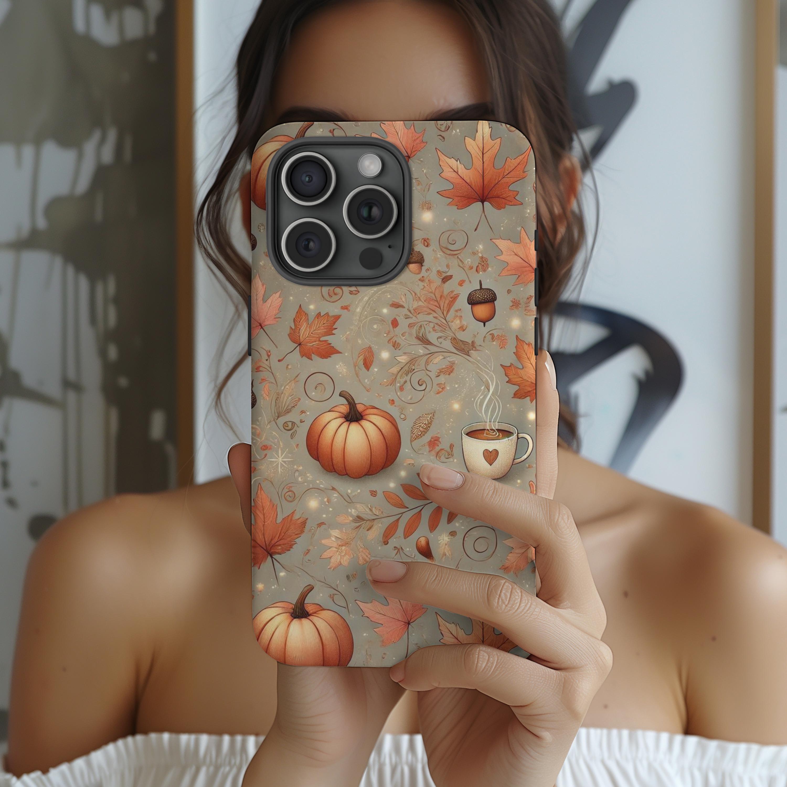 🍁🎃 Elegant Pretty Autumn Phone Case – Fall Leaves, Pumpkins, Acorns & Cozy Coffee Vibes ☕🌰