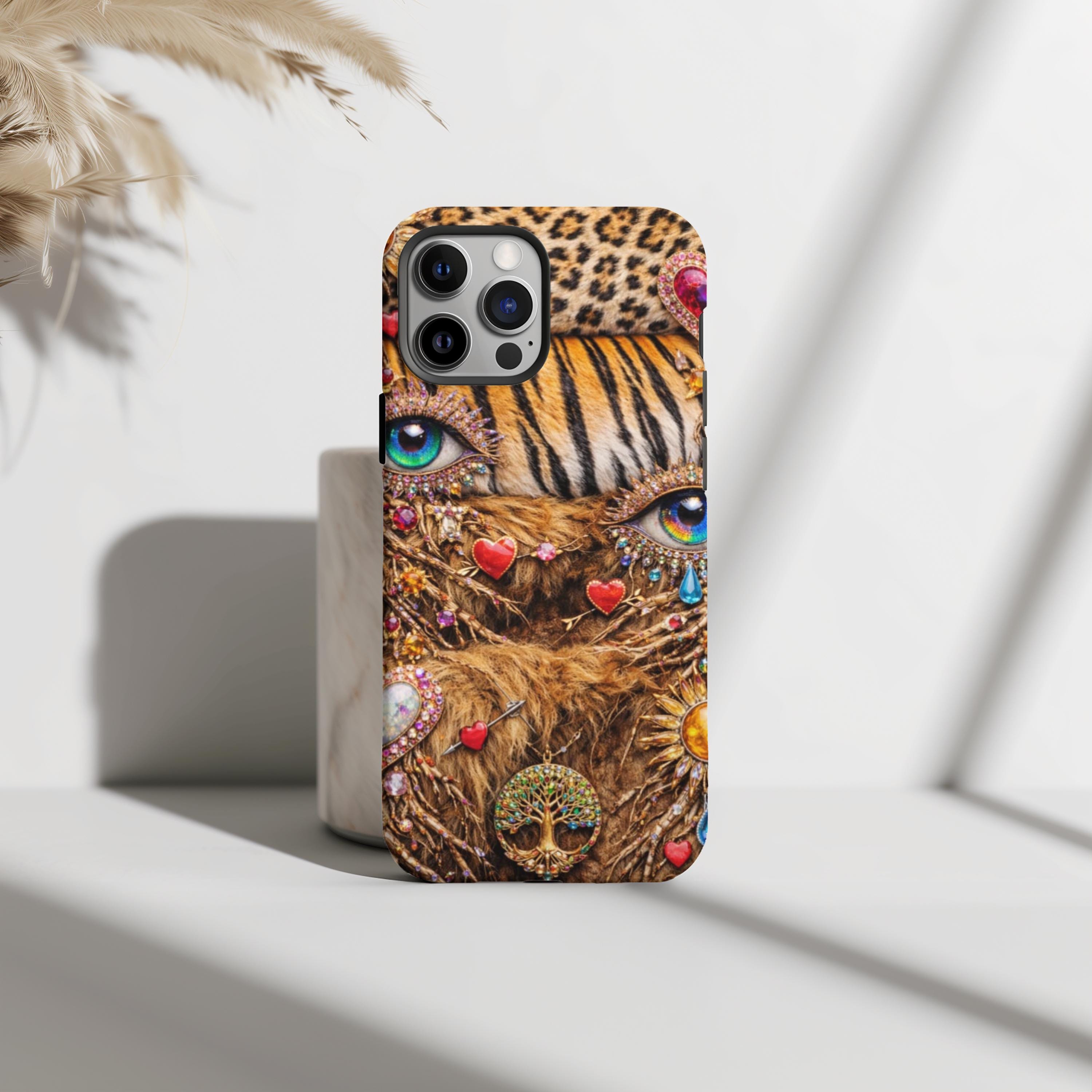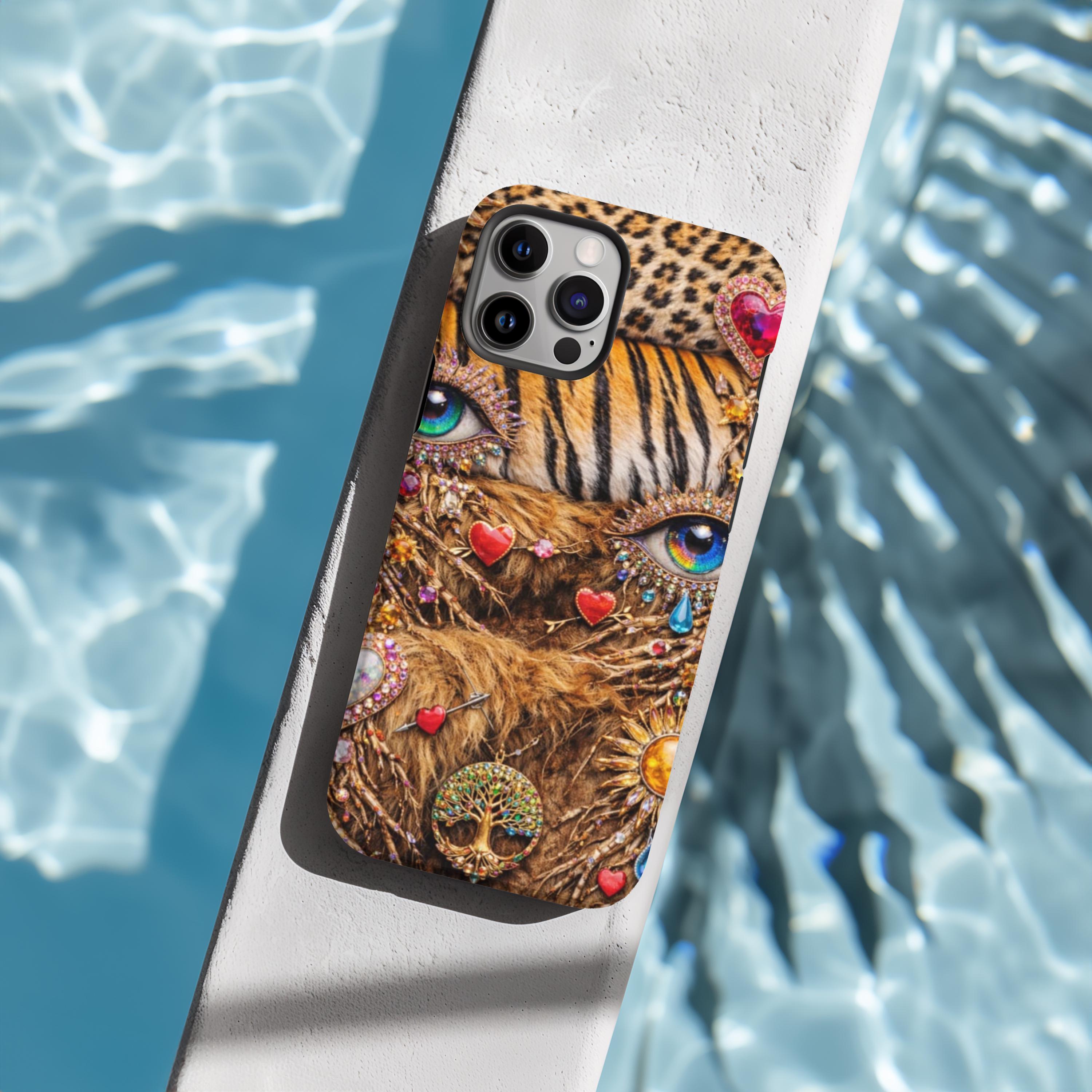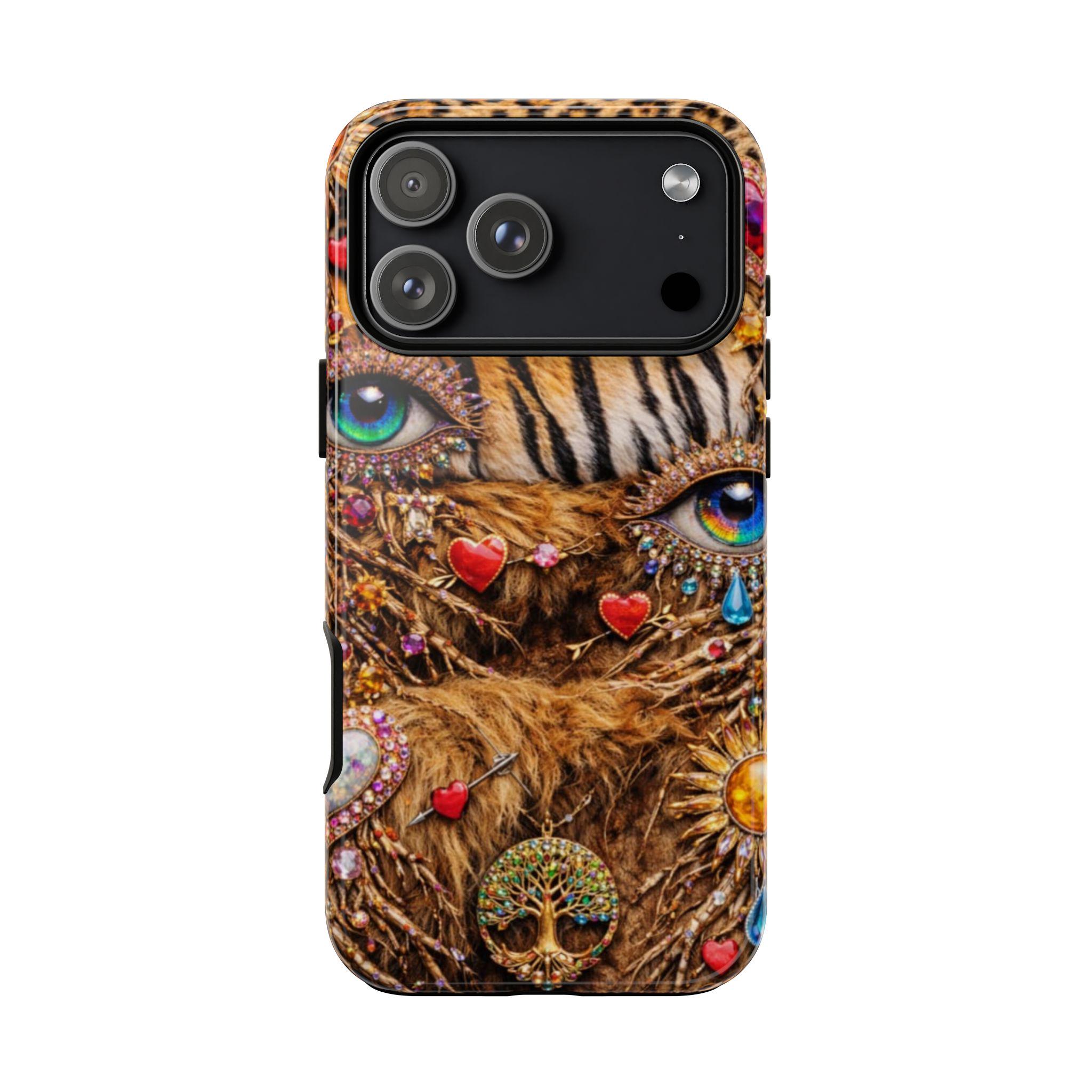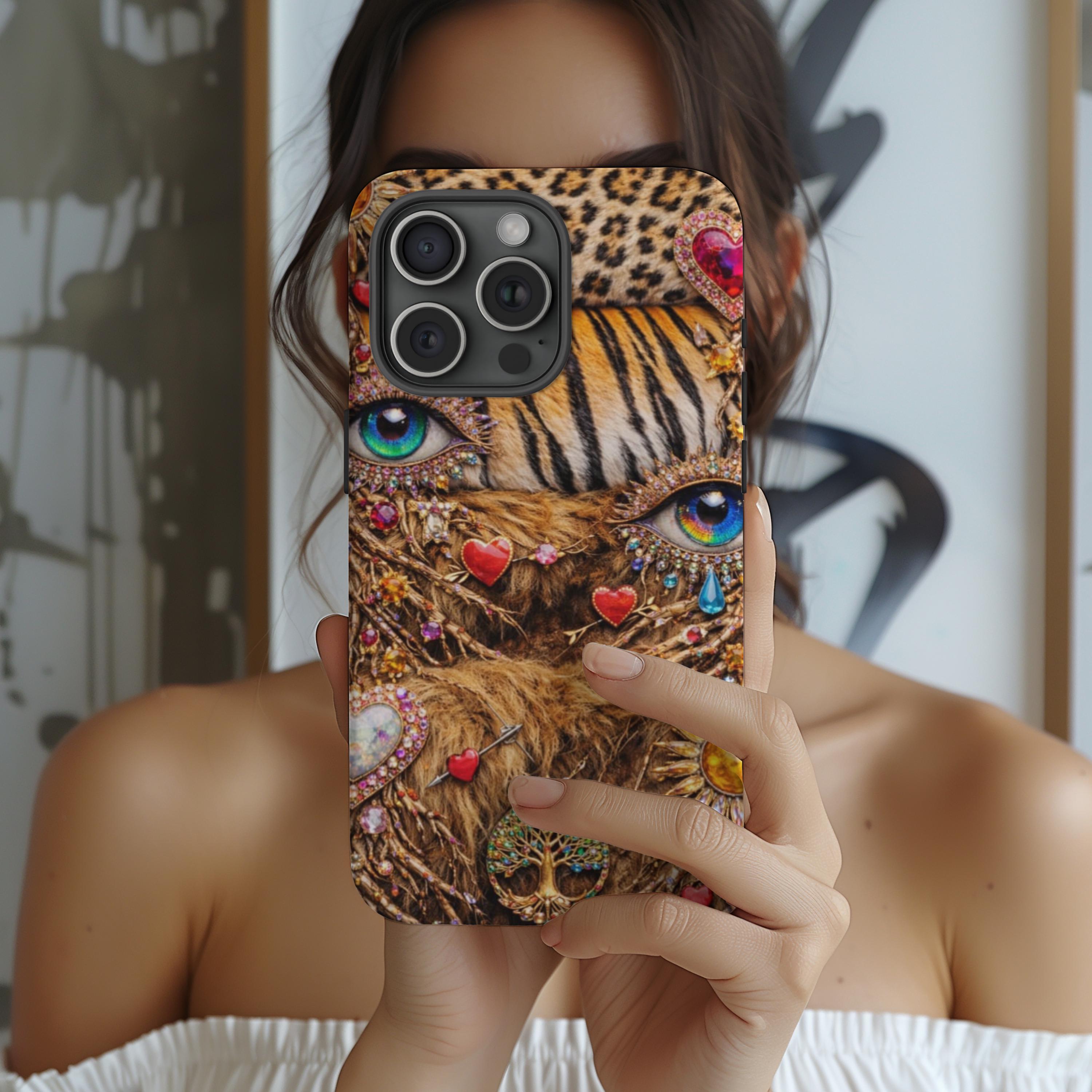 Mosaic Cheetah and Tiger Print Jewel Eye Phone Case