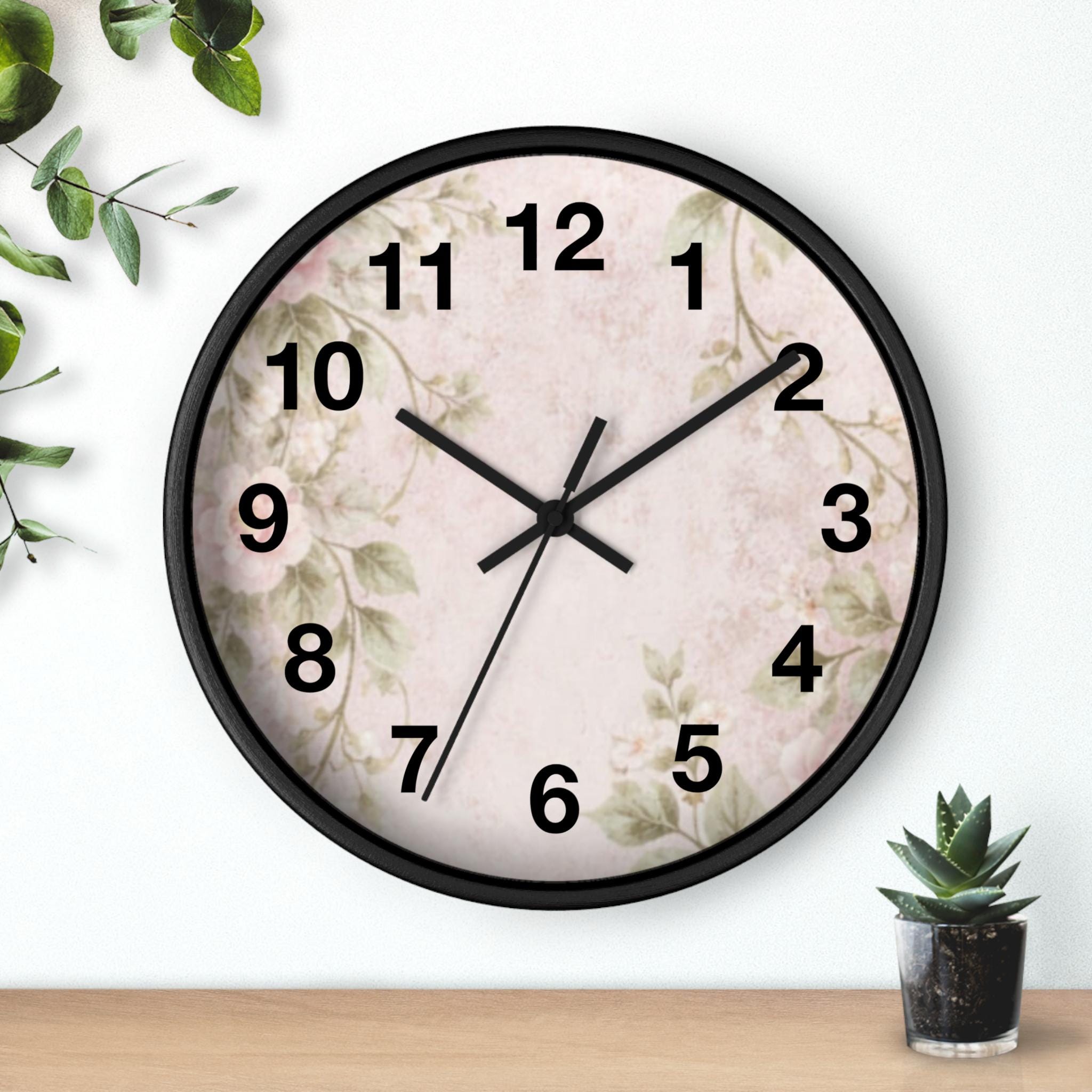 The floral design is thoughtfully arranged to feel light, airy, and effortlessly elegant, evoking cottagecore and romantic aesthetics without overwhelming the space. Soft blooms paired with subtle pink tones create a calming visual that complements both minimalist and decorative interiors. Whether styled as a focal point or a subtle finishing touch, this wall clock adds character and charm while blending seamlessly with your décor.