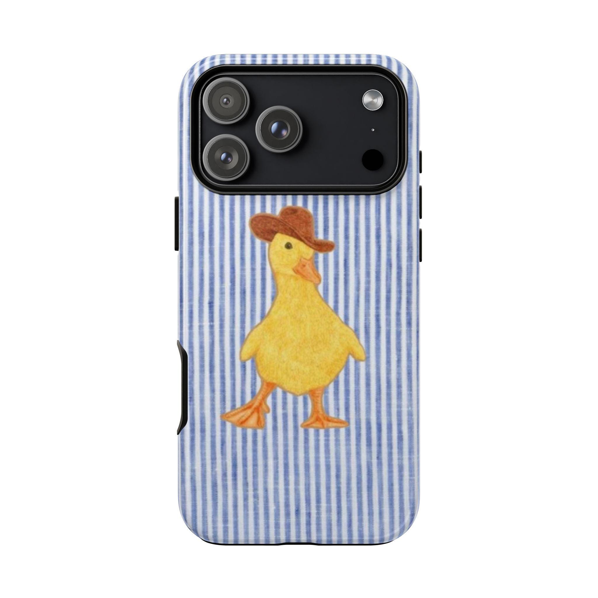 Blue Striped Duck Phone Protective Case, Cute Duckling Phone Case