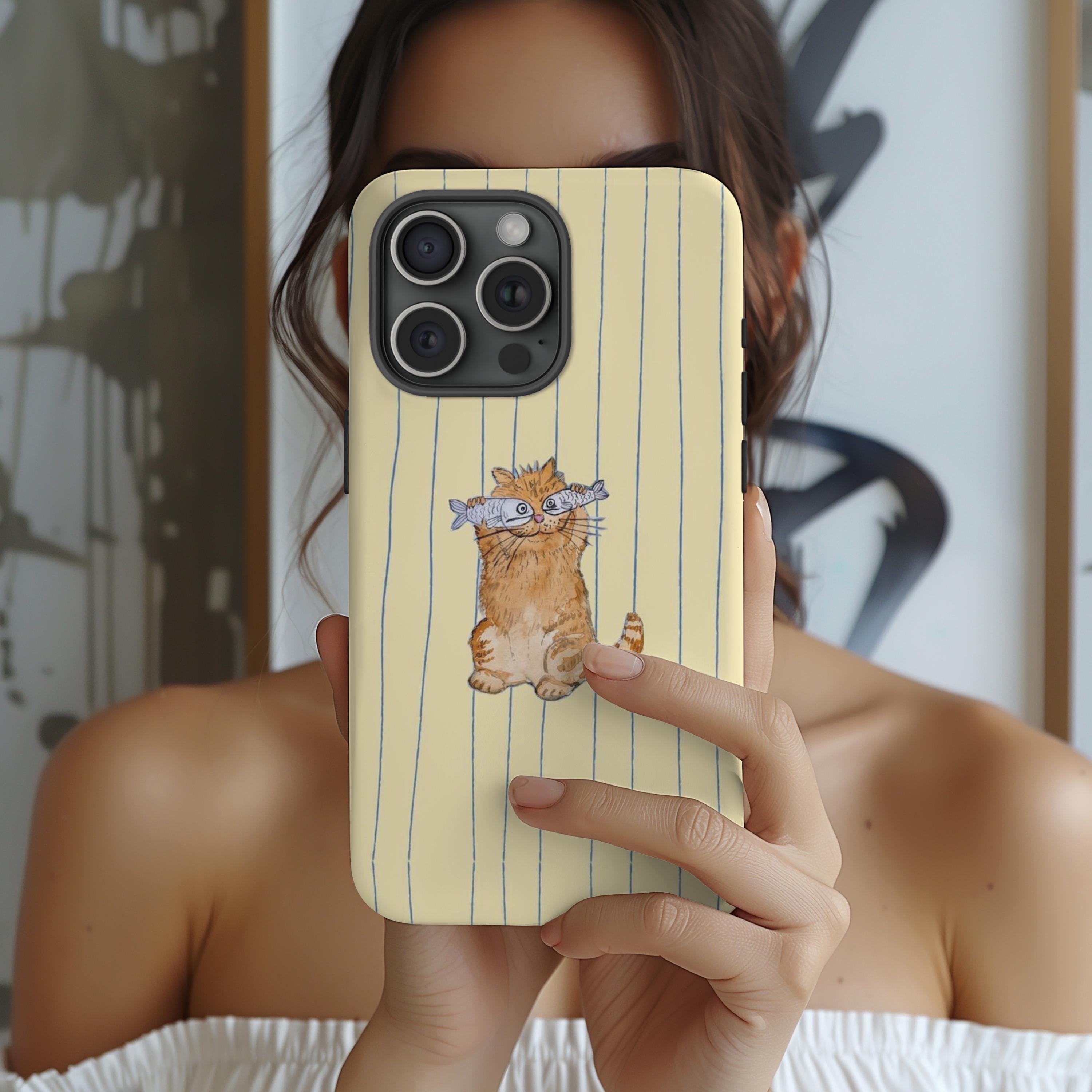 Cute, simple, and full of charm, this Stripe Cat and Fish Phone Case is the perfect combination of protection and playful design—an everyday accessory that makes you smile every time you pick up your phone.