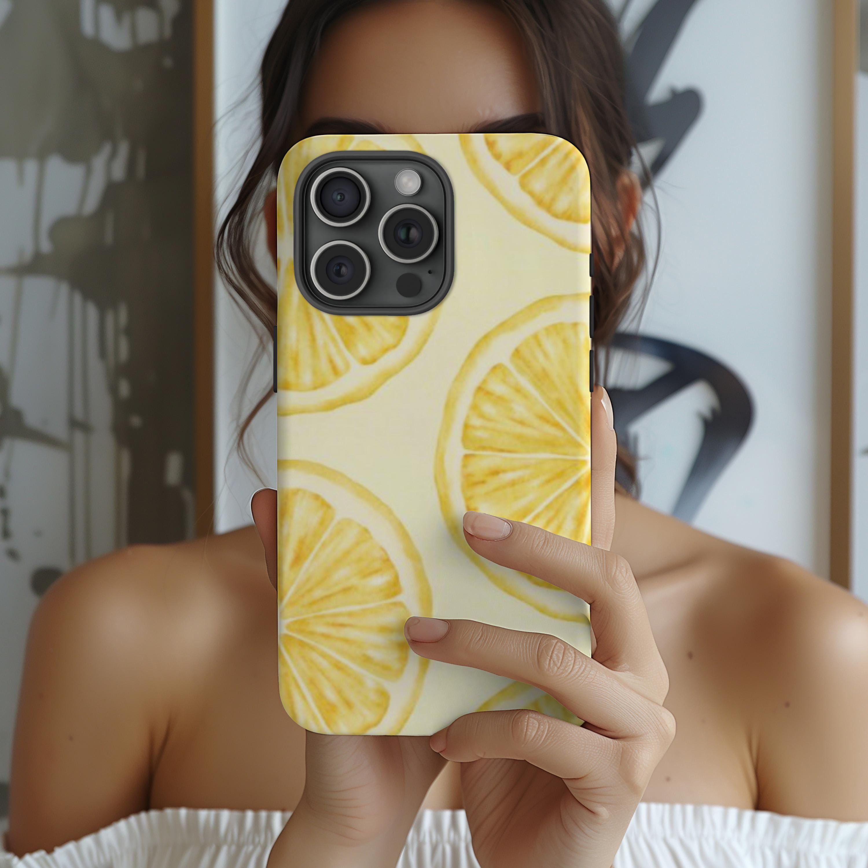 Whether you're drawn to summer-inspired fashion, Mediterranean vibes, cottagecore style, or simple cute accessories, this lemon phone case adds a fun and uplifting touch to your daily essentials. The crisp yellow lemons against a clean background create a balanced design that feels fresh, elegant, and easy to match with any personal style. It’s ideal for those who love subtle statement pieces that stand out without being too bold.
